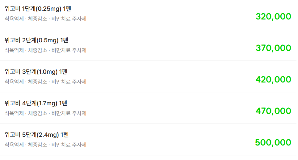 위고비는 비급여 의약품으로 약국이 판매 가격을 자율적으로 책정합니다.